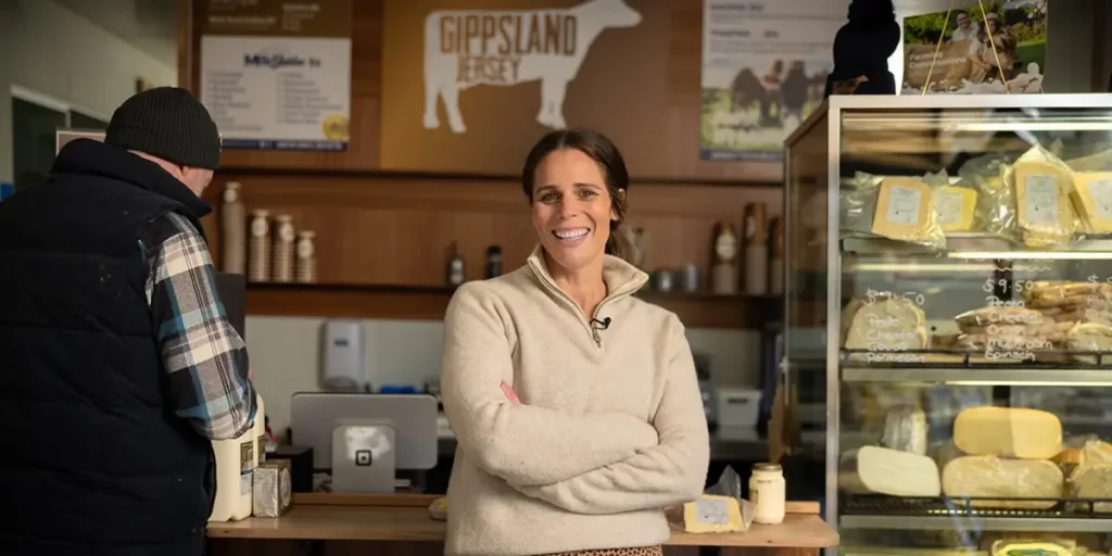 Gippsland dairy farmer Sallie Jones co-founded Gippsland Jersey to bring positivity back to the industry and, with Gardiner’s support, has become a confident leader driving rural change.