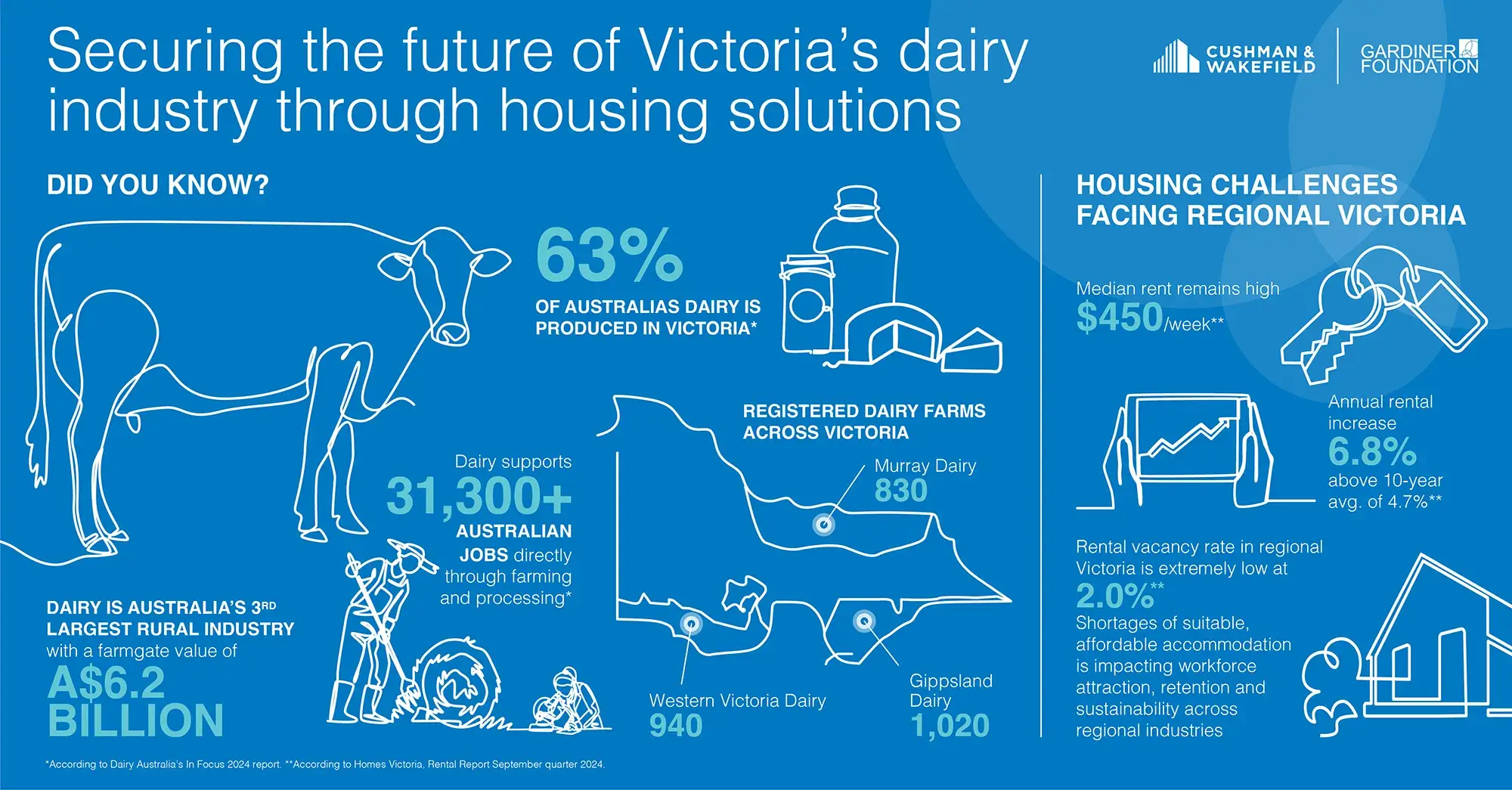 Access to affordable, secure housing is becoming a major barrier to attracting and retaining a skilled workforce in Victoria’s dairy regions. This challenge is threatening the long-term sustainability of the state’s $3 billion dairy industry and the strength of the rural communities that support it.